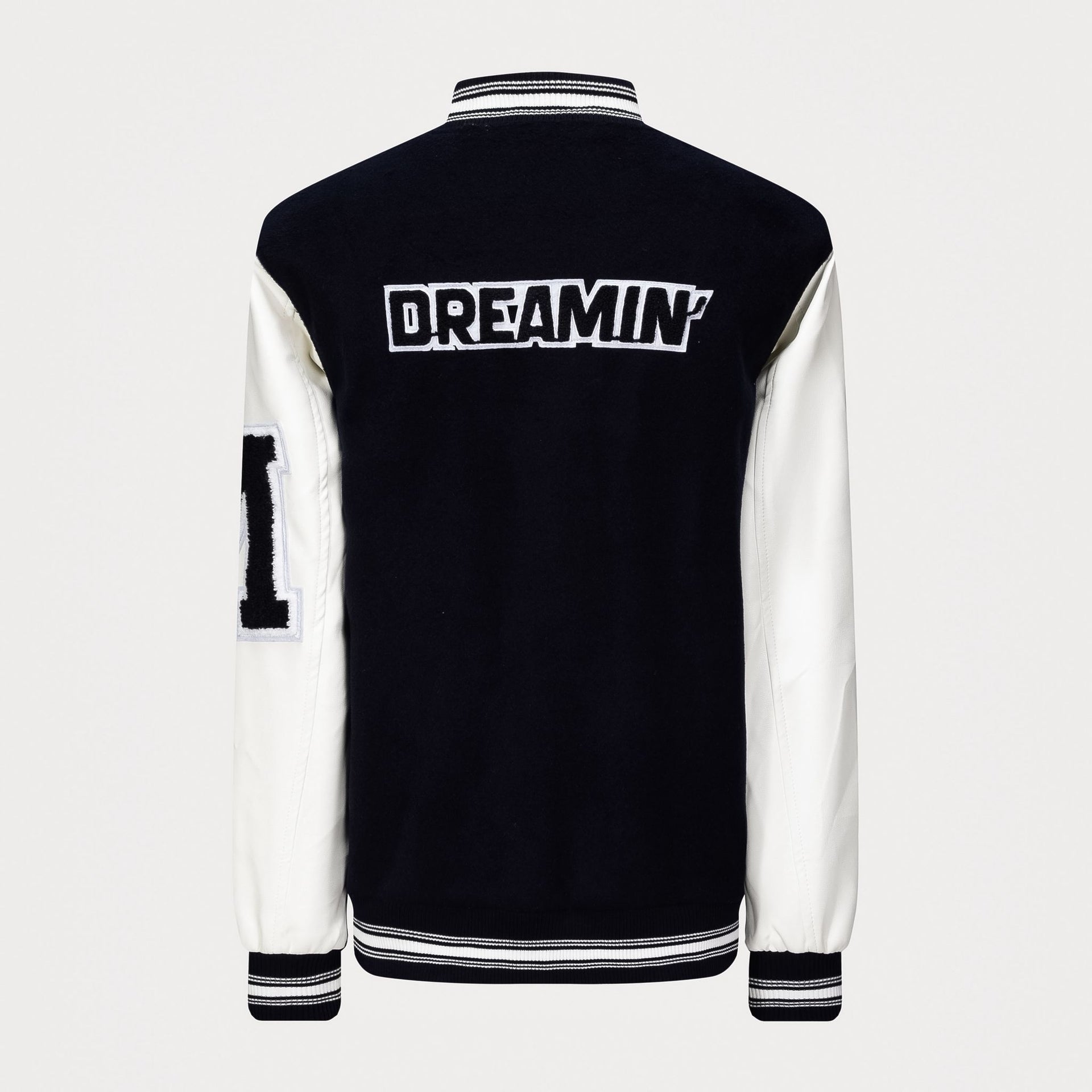 Dit stoere varsity jack is een echte eyecatcher. Met zijn donkerblauwe body, witte mouwen en sportieve patches geeft het jouw outfit direct die typische American college vibe. De ribgebreide boorden en drukknoopsluiting maken het jack helemaal af. Perfect om casual en toch opvallend voor de dag te komen.