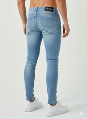 Deze lichtblauwe slim fit jeans heeft een mooie, gesloten fit rond de bovenbenen die zorgt voor een strakke en verzorgde uitstraling. De pijpen lopen iets wijder uit, waardoor de jeans nooit als een legging aanvoelt en je altijd comfortabel blijft bewegen. Daarnaast zijn de pijpen bewust iets langer ontworpen, zodat je geen “hoog water” effect krijgt en de jeans altijd perfect valt.